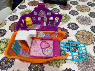 Este set incluye un mini bebé, una trona rosa y un biberón. - Bebé con babero amarillo. - Trona de plástico rosa. - Biberón con diseño de fresa. Está sin abrir, porque abrí una esquina y vi que era repetido y no seguí. Venta en mano 🫱🏼