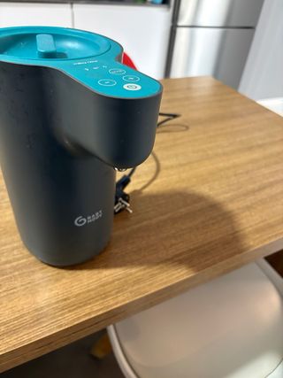 Dispensador de agua para preparar biberones de forma rápida y sencilla. Su diseño moderno y funcional lo hace ideal para el uso diario. - Color gris oscuro y tapa turquesa. - Panel de control táctil con diferentes temperaturas. - Marca: Baby Moov.