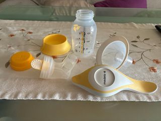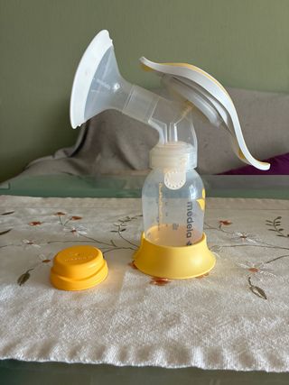 Sacaleches manual de la marca Medela. - Incluye embudo. - Biberón con base. - Tapa de cierre. Usado un par de veces, muy bien conservado y siempre a sido esterilizado. No tiene su caja original porque mi hijo la rompió.