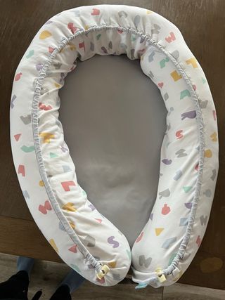 Nido reductor para bebé con un divertido estampado de letras y formas geométricas en tonos pastel. Ideal para crear un espacio acogedor. - Funda con estampado de letras y formas. - Relleno suave y confortable. - Diseño ovalado. -Marca babyclic