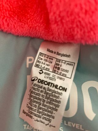 Chaqueta infantil de invierno o para la nieve, reversible. - Exterior de color azul. - Interior de forro polar fucsia. - Marca: Wedze.