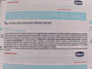 Almohada de la marca Chicco para bebés a partir de 0 meses. Ayuda a que el bebé duerma tranquilo. - Diseño ergonómico. - Tejido suave y confortable. - Indicada para recién nacidos. - Dispone de un dispositivo electrónico que simula el sonido del latido de un corazón.