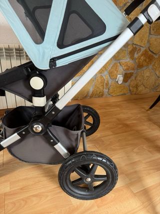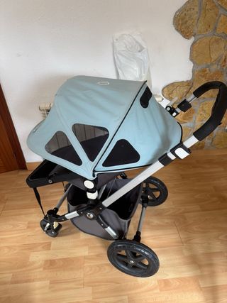 Cochecito Bugaboo Camaleon 3 en color azul claro y gris. - Chasis aluminio - Silla de paseo - Capota de verano con ventilación extensible - Ruedas todoterreno - Capota color crema - Funda protector manillar