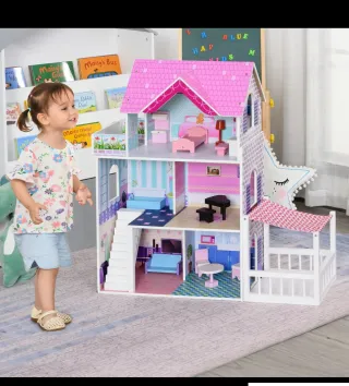 Casita de muñecas madera 3 pisos