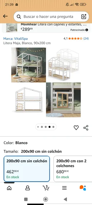 Litera casita blanca 90x200 cm