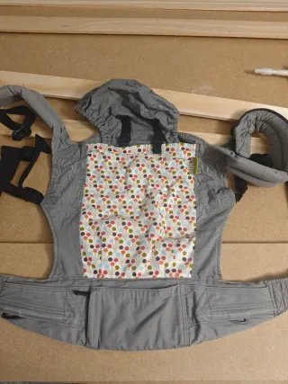 Mochila de porteo de la marca Boba en color gris con un bonito estampado. - Diseño con capucha. - Cinturón lumbar acolchado. - Tirantes ajustables.