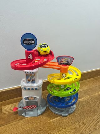 El Parking Turbo Touch de Chicco es un parque de coches de juguete diseñado para los vehículos Turbo Ball de la marca. Incluye un coche Turbo Ball, fabricado en plástico. Promueve habilidades como la orientación y el desarrollo sensorial. Semi nuevo, tal como se aprecia en la foto. Precio original: 29€.