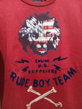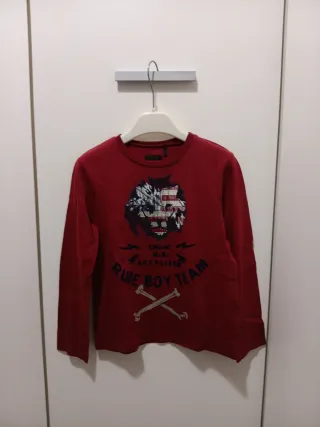 Camiseta de manga larga de la marca IKKS para niño. - Color rojo. - Estampado delantero con diseño gráfico. - Cuello redondo. - Hombros 30, largo 42, ancho por la tripita 34.