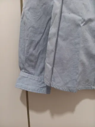 Camisa de manga larga para niño de la marca IKKS. - Color azul claro. - Diseño de rayas finas. - Cuello camisero. - Cierre de botones. - Bolsillo en el pecho. - Muy nueva, casí ni usada. - Hombros 30, largo 51, ancho 35.