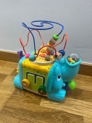 Divertido cubo de actividades con forma de elefante, ideal para el desarrollo de la motricidad fina. - Diseños coloridos y atractivos. - Incluye diferentes juegos didácticos para incentivar la motricidad y la imaginación. - Juego de 0-36 meses.