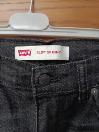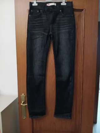 Pantalones vaqueros Levis para niño en talla 14. - Color negro. - Diseño moderno. - Largo 100 cintura Regulable con gomas 35. - Nuevo sin estrenar.