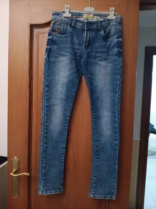 Pantalones vaqueros de la marca Lois para niño. - Talla 14. - Diseño Shinny en tejido denim. - Largo 98, Cintura 37 regulable con goma y botones.