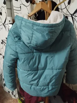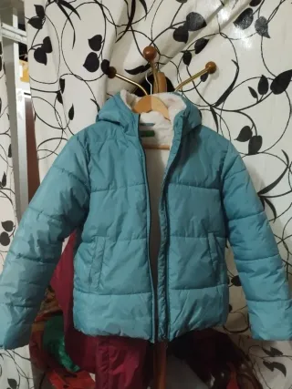 Abrigo acolchado de la marca Benetton para niña. - Color azul. - Talla 11/12 años. - Capucha. - Forro interior blanco.