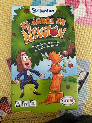 Juego educativo El Árbol de Newton de Skillmatics, ideal para aprender sobre equilibrio y gravedad de forma divertida. - Edad recomendada: +6 años. - Jugadores: 2-6. - Duración aproximada: 20 minutos. - Categoría: STEM (Ciencia, Tecnología, Ingeniería y Matemáticas).