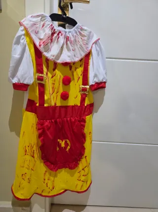 Disfraz de payaso estilo Miss McKiller con un toque macabro. Perfecto para fiestas temáticas. Talla 10-12