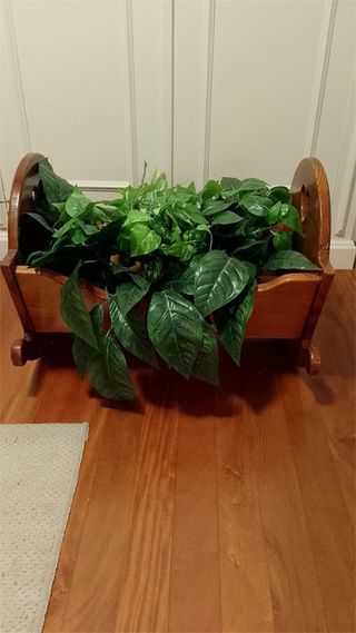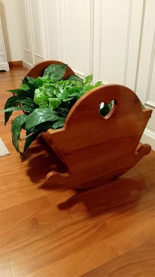 Cuna de madera con un diseño decorativo. Ideal para añadir un toque especial a tu hogar. - Fabricada en madera. - Diseño curvo y elegante.