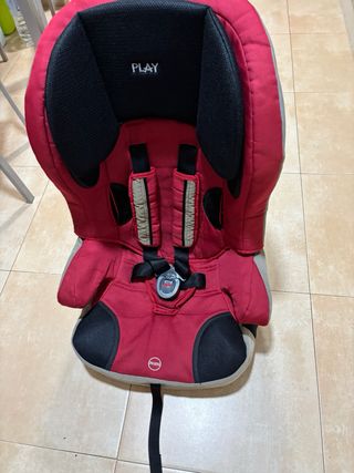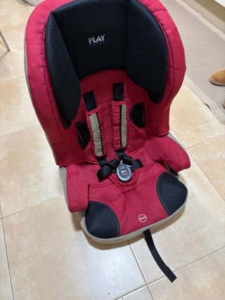 Silla de seguridad para coche de la marca Play, en color rojo. - Diseño acolchado para mayor comodidad. - Arnés de seguridad de 5 puntos. - Funda extraíble y lavable. - Solo un usuario. - Se desmonta la parte de arriba para cuando va creciendo. (Ver fotos).