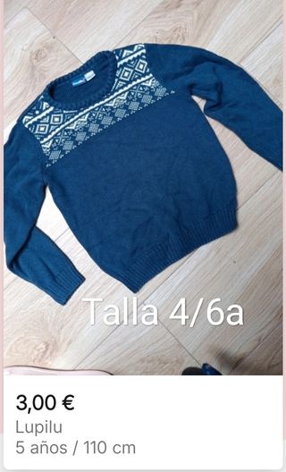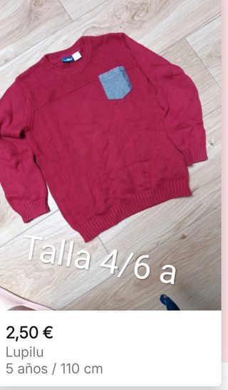 Varios jersey de punto--3€ uni, sudaderas con capucha 2.€ uni , camisas manga larga 2.50€ uni y camisetas manga larga 1€ uni - Talla 4/6 años. - Detalle de punto texturizado en la parte superior. - Puños y bajo elásticos.