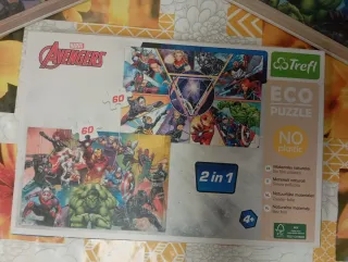 Dos puzzles de los Vengadores, ya montados y enmarcados. - Puzzle 1: Diseño de los Vengadores. - Puzzle 2: Eco Puzzle de Trefl, 2 en 1, 60 piezas. - Materiales naturales, sin plástico. Se venden enmarcados y listos para decorar. Muy bonitos para dormitorios infantiles tanto colgar como colocar en una balda. Se hace precio por lotes. Pregunta sin compromiso.