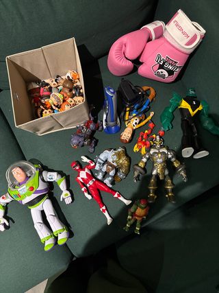 Lote de juguetes variados. - Incluye figuras de acción y otros juguetes. No están rotos, pero a alguno como el woody le falta el sombrero - El precio es por todo el lote.