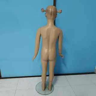Maniquí de niña de cuerpo completo, ideal para escaparates o exposiciones. - Color: beige. - Material: plástico. -Pequeñas marcas por el uso, ver fotos.