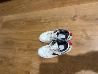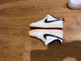Zapatillas deportivas Nike en color blanco con detalles en rojo. - Cierre de velcro. - Logo de Nike en el lateral. - Tirador trasero rojo. -Talla 33.5