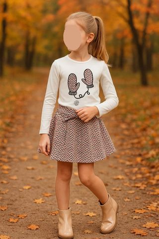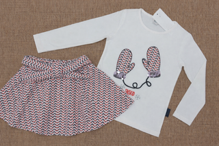 Tallas: 3a / 4a / 6a / 12a. Camiseta de algodón con felpa fina en el interior. Falda a juego con el mismo estampado que el interior de las manoplas en color naranja y negro. Más tallas y/o modelos en nuestro perfil.