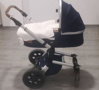 Carricoche Jané azul marino en buen estado, ideal para recién nacidos. - Incluye capazo. - Silla. - Bolso a juego. - Saco de invierno azul marino. - Saco de verano de color rosa. Carricoche muy manejero para entrar en el ascensor. Se regala peluche. Todo por 80€.
