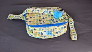 Preciosa bolsa para carrito de bebé de la marca Tuc Tuc. Está en muy buen estado y tiene un diseño colorido con estampado de zigzag. - Ideal para organizar los accesorios del bebé durante los paseos. - Asa larga para colgar del carrito y asas cortas para llevar en la mano. - Compartimento principal amplio y bolsillos adicionales para una mejor organización.