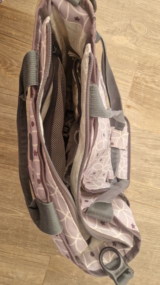 Bolso para el carro del bebé con mucha capacidad,varios bolsillos y cintas para sujetarse en el carro y una correa para llevarlo como bandolera