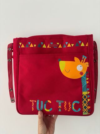 Preciosa bolsa de la marca Tuc Tuc, ideal para llevar todo lo necesario para el bebé. Está en muy buen estado y tiene un diseño colorido con estampado de zigzag. - Asa de mano y asa larga para colgar al hombro. - Compartimento principal amplio y espacioso. - Bolsillo frontal con cremallera.