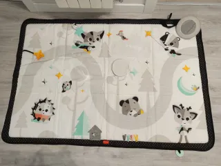 Manta XL de actividades para bebés de la marca Tiny Love, con un diseño de animales del bosque y elementos interactivos con texturas. Cuenta con todos los accesorios en perfecto estado y su bolsa original. Medidas 150x100 cm