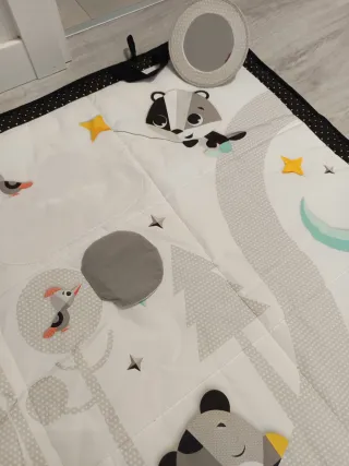 Manta de juegos Yookidoo para bebés de 0 a 12 meses. Se transforma en una bolsa de transporte. - Tamaño XL: 100 x 145 cm (39 x 57). - Acolchado extra. - Espejo grande. - Reproduce música con detección de movimiento. - Juego multisensorial. - usada poco estado practicamente Nueva. - precio original 45,99€ en Amazon prime