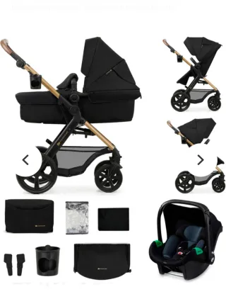 Carro de bebé Kinderkraft MOOV XL en color negro, en perfecto estado. - Chasis de aluminio dorado. - Capazo convertible en silla. - Incluye adaptadores para silla de coche. - Incluye bolso cambiador. - Incluye burbuja de lluvia. - Incluye cubrepiés. - Incluye portavasos.