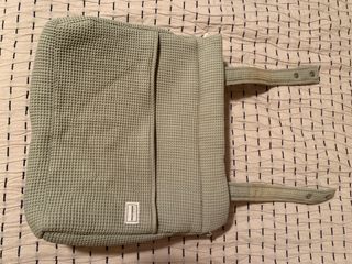Bolsa Icon para el cochecito es muy ligera. Está acolchada, por lo que los productos de su interior están protegidos. Se sujeta al cochecito con dos cintas que se abrochan con botón de click. También tiene una bandolera quita y pon, que también se ajusta con botón de click, para llevarla cómodamente al hombro o como bolso cruzado. Se cierra con cremallera tanto la parte superior, como su bolsillo delantero. En nuestro exclusivo tejido Lula 100% algodón orgánico con textura. En buen estado solo tiene desgastado las asas donde cuelga del carro se puede apreciar en las fotos Medidas: 37 x 32 x 11cm