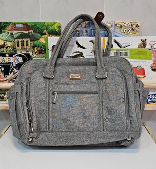 Se vende precioso bolso para pañales o bolso maternidad hospital de la marca Welavila, en color gris. Es espaciosa y cómoda de llevar. Viene con un cambiador doblable y fácil de limpiar. Se usó solamente 2 semanas. - Tejido de lona resistente. - Asa de mano y asa para colgar del hombro. - Bolsillos adicionales para mayor organización. - En perfecto estado. Se vende SIN la correa de hombros.