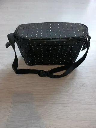 Usado. El más práctico y amplio bolso 100% poliester con bolsillo lateral y práctica fijación al cochecito.