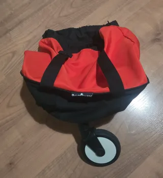 Bolsa de repuesto para sillas de paseo BABYZEN y YOYO. Color rojo y negro. - Asas de transporte negras. - Cierre con cordón ajustable. - Rueda integrada en la base.