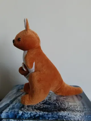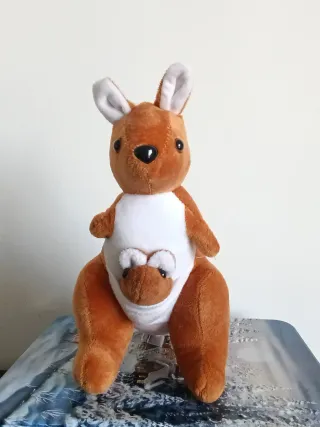 Adorable peluche de canguro con su cría en la bolsa. Perfecto para coleccionar o regalar. - Suave al tacto. - Diseño tierno y detallado.