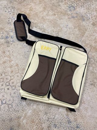 Práctica mini cuna para bebé, ideal para llevar a todas partes. Incluye bolsos para organizar sus pertenencias y una correa para facilitar su transporte. - Diseño en color beige y marrón. - Correa ajustable para el hombro.