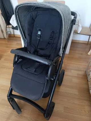 Vendo cochecito de bebé completo, ideal para recién nacidos y niños pequeños. Incluye capazo, silla de paseo, maxicosi y bolso a juego. El conjunto está en muy buen estado y es de color marrón topo. - Cochecito ligero y fácil de manejar. - Capazo espacioso y cómodo. - Silla de paseo reversible. - Bolso cambiador práctico y amplio.