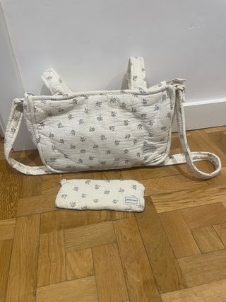 Bolso y neceser a juego de la marca Minicoton con un bonito estampado floral. - Bolso acolchado. - Neceser con cierre de cremallera.