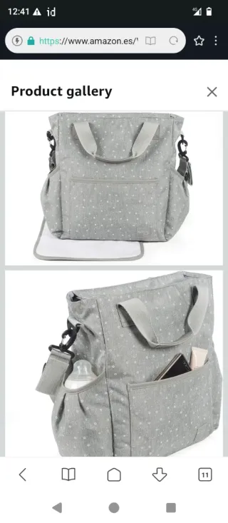 Bolso de color gris, ideal para llevar en el carrito de bebé. Cuenta con varios compartimentos para organizar tus pertenencias. - Cierre con cremallera en bolsillo frontal. - Cierre con velcro en solapa principal. - Correa ajustable para colgar. - Bolsillo exterior. - Material resistente.