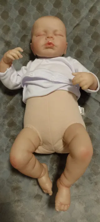 Muñeco bebé reborn de silicona, con un aspecto muy realista Material de vinilo Cuerpo de tela Tiene pestañas Pelo pintado a mano Peso aprox 0,88kg Longitud de 43-50cm Incluye body blanco el de la imagen Chupete y biberón Nuevo sin estrenar en su bolsa original