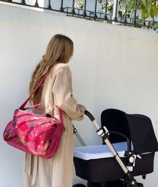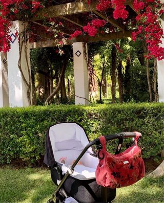 Bolso y colchoneta de la marca Pasito a Pasito con un bonito estampado floral.