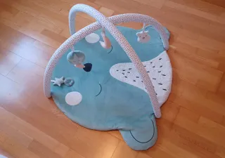 Área de estimulación y actividades para bebé con diseño de oso. - Incluye los dos arcos desmontables. - Incluye 4 peluches/sonajero con diferentes sonidos y texturas. - Incluye bolsa de almacenaje. - Material suave y acolchado. - Impecable conservación.