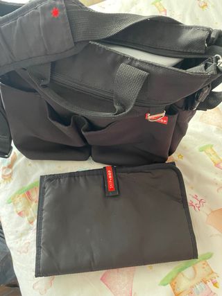 Vendo bolso Skip Hop para carrito de bebé, color negro. Está en buen estado y es muy práctico. El color del bolso esta perfecto, no esta descolorido. - Incluye cambiador a juego. - Tiene varios bolsillos para organizar los artículos del bebé. - Las correas son resistentes y ajustables.