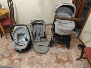 Conjunto de cochecito y silla de paseo Chicco Stylego. - Silla de paseo con capazo. - Silla de coche grupo 0+. - Diseño moderno y funcional. Vendo trio chicco stylego POR SOLO 200€!! en muy buen estado, solo algunas pequeñas imperfecciones del uso. Contiene capazo (falta el colchon), silla de paseo y silla para coche. Los tres cuentan con su propia capota extensible y con ventilacion y cubrepiés. Bolso del mismo set incluido. Pregunta sin compromiso