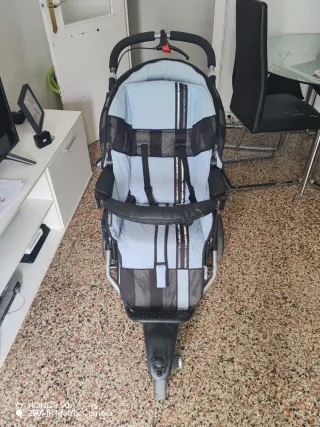 Careo gemelar prácticamente nuevo, con solo un mes de uso. Características: Convertible en silla de paseo. Capazos 2 en 1, convertibles en silla. Asientos ajustables en ambos sentidos de la marcha. Respaldos reclinable en distintas posiciones. Chasis ligero y de fácil plegado. Contiene una cesta de gran tamaño. Incluye bolso. Medidas: Dimensiones plegado: 75cm largo x 75cm ancho x 30cm de alto. Dimensiones abierto: 90cm largo X 75cm ancho. Manillar 105cm.