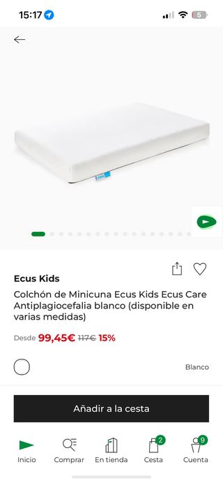 TECNOCOLCHÓN - Colchón de Cuna Bebé Visco Baby Spring | Reversible Verano-Invierno | Gran Suavidad | Colchón de Muelles | Certificados Oeko-Tex® y CertiPUR™ 117l. x 57an. x 16Grosor centímetros Comprado en Amazon Pvp 79'90€